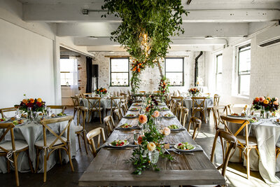 Rental includes all table varieties, chairs, furniture, in-house decor, utility carts, cleaning supplies, and one facility manager.